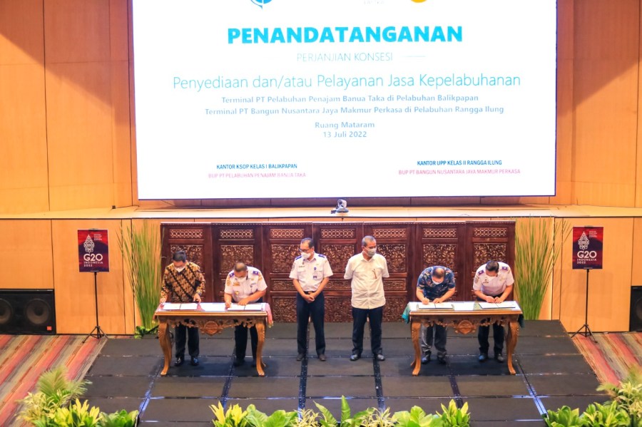 Pemberian hak konsesi ini ditandai dengan acara Penandatanganan Perjanjian Konsesi antara Kantor Kesyahbandaran dan Otoritas Pelabuhan Kelas I Balikpapan dengan PT Pelabuhan Penajam Banua Taka serta Kantor Unit Penyelenggara Pelabuhan Kelas II Rangga Ilung dengan PT Bangun Nusantara Jaya Makmur Perkasa yang berlangsung di Ruang Mataram Kantor Kementerian Perhubungan, Jakarta, Rabu (13/7/2022).