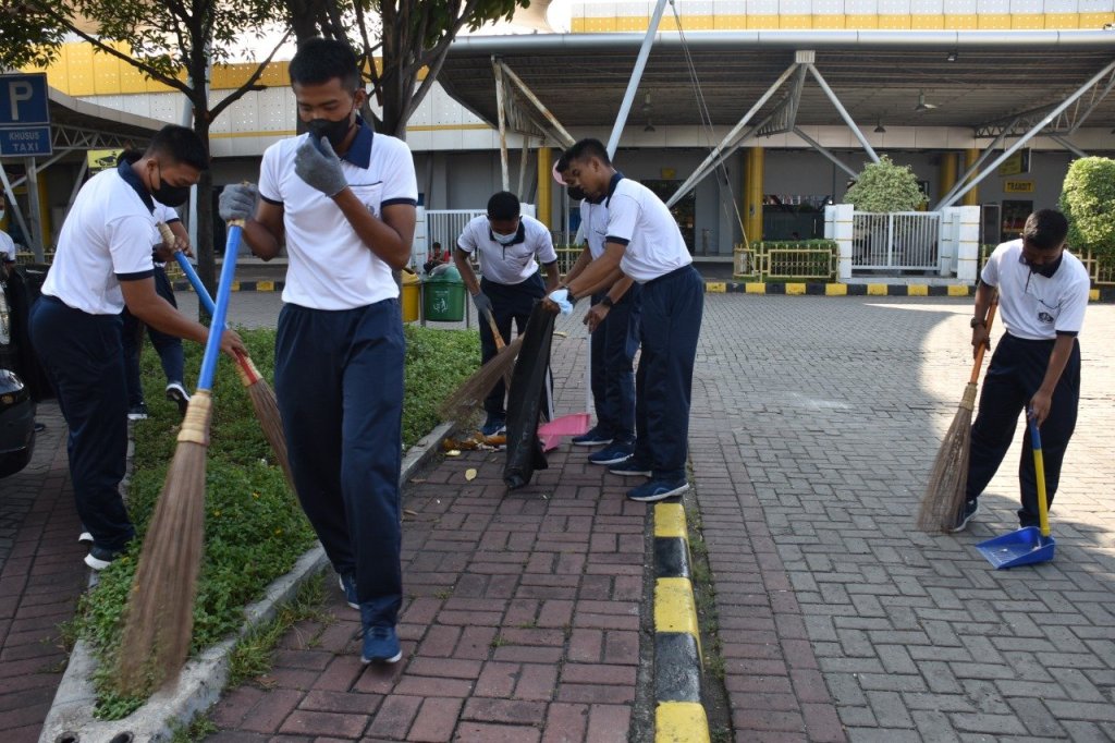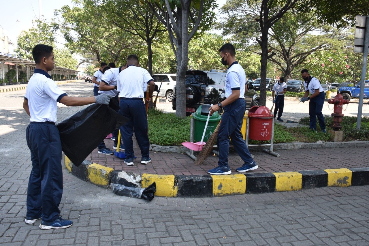 Menjelang akhir pekan, Komando Lintas Laut Militer bersama-sama dengan stakeholder wilayah Jakarta Utara melaksanakan kegiatan padat karya dan bersih-bersih Pelabuhan Tanjung Priok khususnya di halaman terminal penumpang Nusantara Pura II, Tanjung Priok, Jakarta Utara, Jumat (15/7/2022).