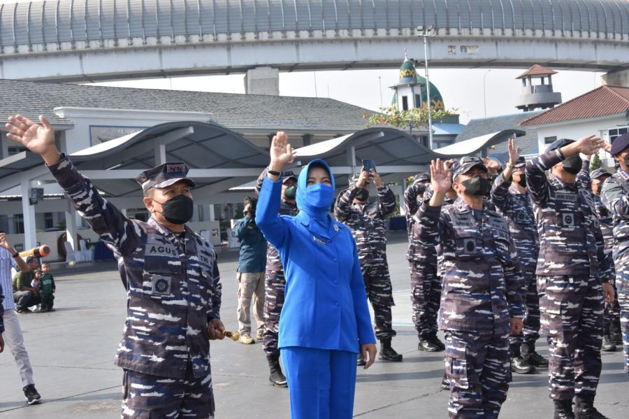 Keberangkatan KRI Bima Suci dilepas langsung oleh Panglima Komando Lintas Laut Militer Laksda TNI Agus Hariadi didampingi Ketua Gabungan Jalasenastri Kolinlamil Ny. Nana Agus Hariadi dan pejabat utama serta kepala satuan kerja Kolinlamil di Dermaga Mako Kolinlamil, Tanjung Priok, Jakarta Utara, Minggu (24/7/2022).