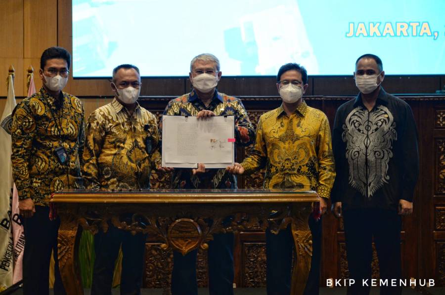 Turut hadir dalam penandatangan perjanjian tersebut diantaranya Direktur Jenderal Perhubungan Laut Arif Toha, Wakil Ketua DPR Bidang Industri dan Pembangunan Rachmat Gobel, Deputi Bidang Pendanaan Pembangunan BAPPENAS Scenaider Clasein Hasudungan Siahaan, Direktur Jenderal Pengelolaan Pembiayaan dan Risiko Kementerian Keuangan RI Luky Alfirman serta para Direksi BUMN terkait. (MM-01)