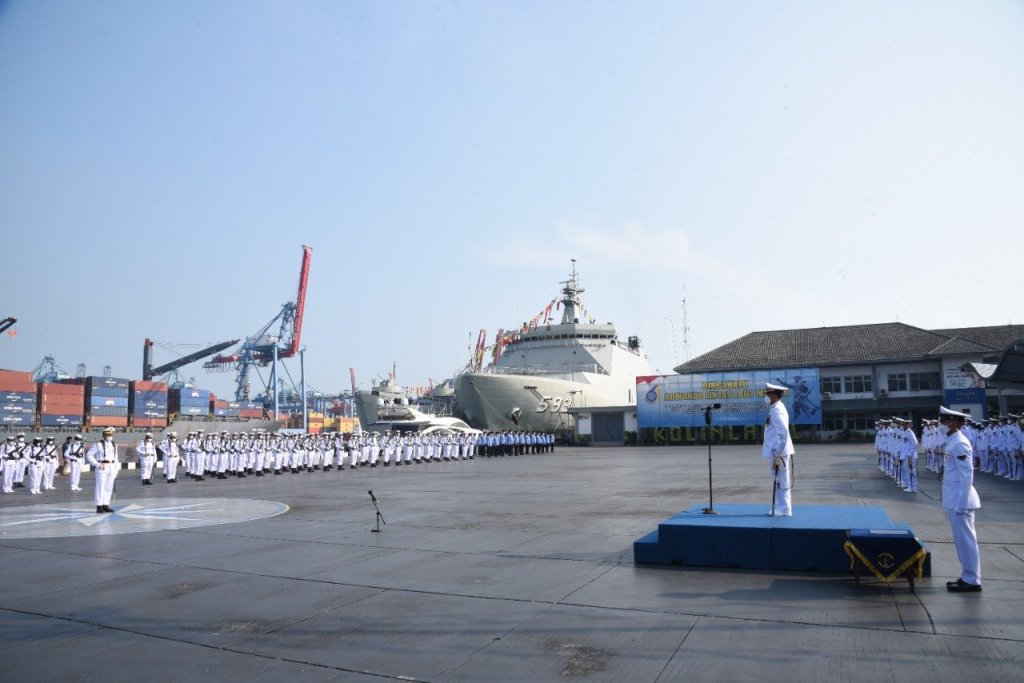 Upacara yang berlangsung dengan khidmat ini diikuti oleh seluruh prajurit dan PNS Kolinlamil dengan Inspektur upacara Panglima Komando Lintas Laut Militer Laksda TNI Agus Hariadi.