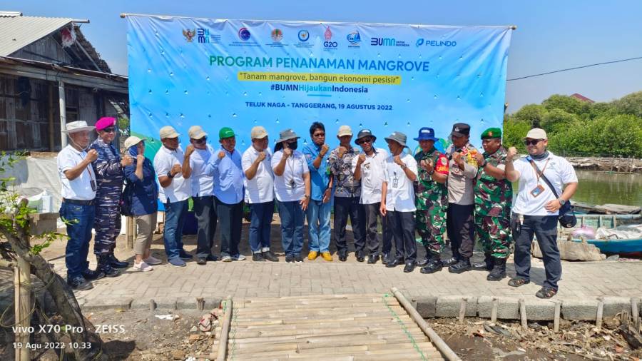 Head Regional 2 PT Pelabuhan Indonesia (Persero) bersama Regional 2 Pelindo Sunda Kelapa melaksanakan Program Tanggung Jawab Sosial dan Lingkungan (TJSL), melalui kegiatan penanaman bibit mangrove di pantai pesisir Tanjung Pasir Desa Lemo – Kecamatan Teluk Naga, Kabupaten Tangerang – Banten Jumat (19/8/2022).