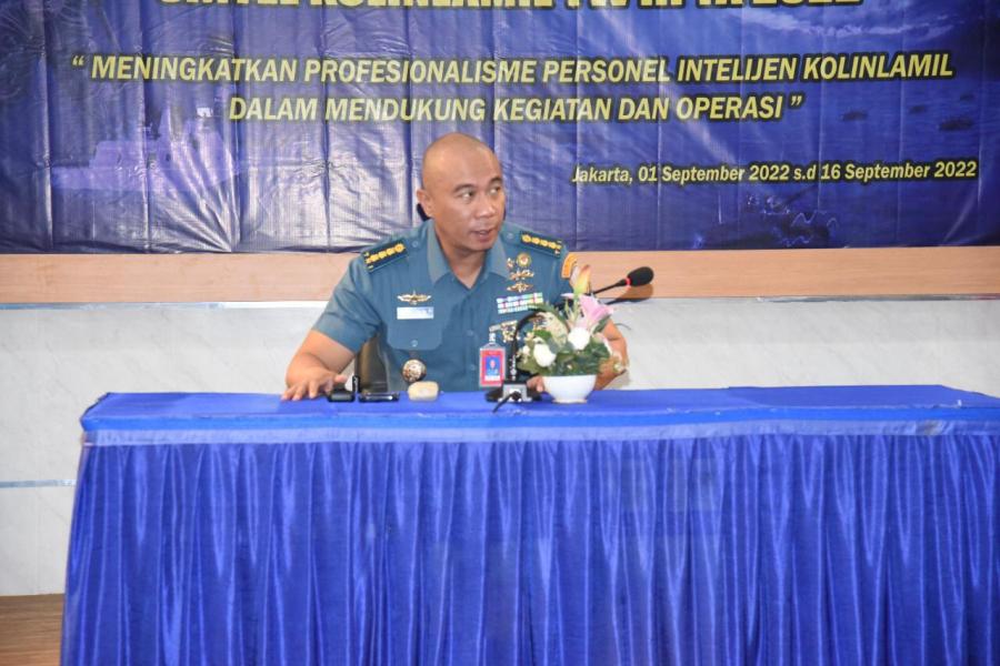 Latihan fungsional intelijen Kolinlamil yang diselenggarakan dengan mengambil tema “Meningkatkan Profesionalisme Personel Intelijen Kolinlamil dalam Mendukung Kegiatan dan Operasi” dibuka oleh Asisten Intelijen Komando Lintas Laut Militer (Kolinlamil) Kolonel Laut (E) Iwan Setiawan di Gedung Laut Natuna Mako Kolinlamil, Tanjung Priok, Jakarta Utara, Kamis (1/9/2022).