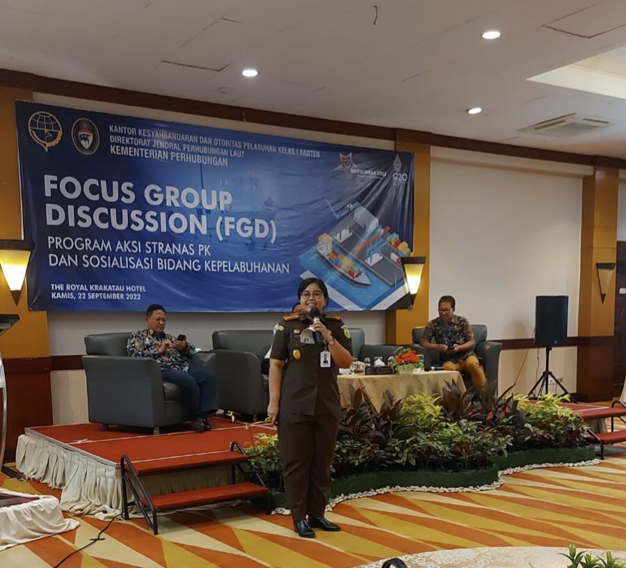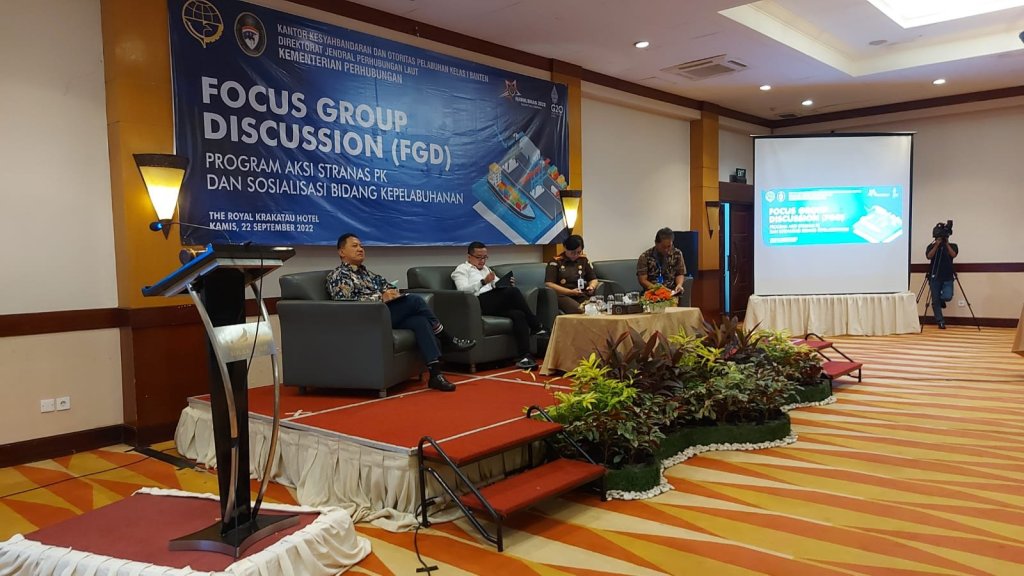 Kementerian Perhubungan Cq Direktorat Jenderal Perhubungan Laut melalui Kantor Kesyahbandaran dan Otoritas Pelabuhan ( KSOP) Kelas I Banten mengadakan Focus Group Discussion (FGD) dalam rangka mengimplementasikan secara penuh Program Aksi Stranas PK dan Sosialisasi Bidang Kepelabuhanan, bertempat di Royal Krakatau Hotel Cilegon – Banten hari ini, Kamis (22/9/2022).
