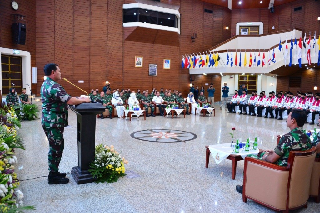 ” Oleh karena itu, Pimpinan TNI AL berupaya semaksimal mungkin memfasilitasi personel TNI AL untuk dapat beribadah ke tanah suci masing-masing. Hal ini sebagai upaya membangun sumber daya manusia yang unggul dengan pondasi kualitas keimanan yang kuat,” jelas Kasal.