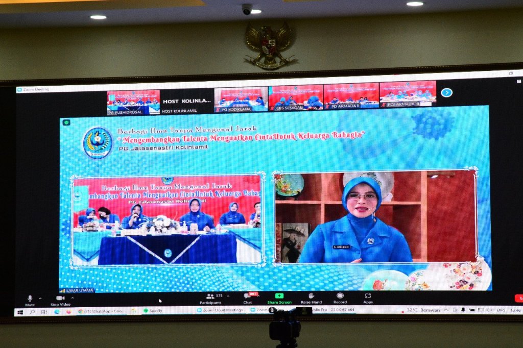 Ketua Gabungan Jalasenastri Pushidrosal Ny.Titi Nurhidayat didampingi Ny. Yuni Rony beserta perwakilan pengurus inti gabungan Jalasenastri Pushidrosal, mengikuti webinar ketrampilan berbagi ilmu tanpa mengenal jarak bersama PG Jalasenastri Kolinlamil yang bertempat di gedung Serbaguna Pushidrosal, Jalan Pantai Kuta V/I, Ancol Timur, Jakarta Utara. Selasa (4/10/2022)