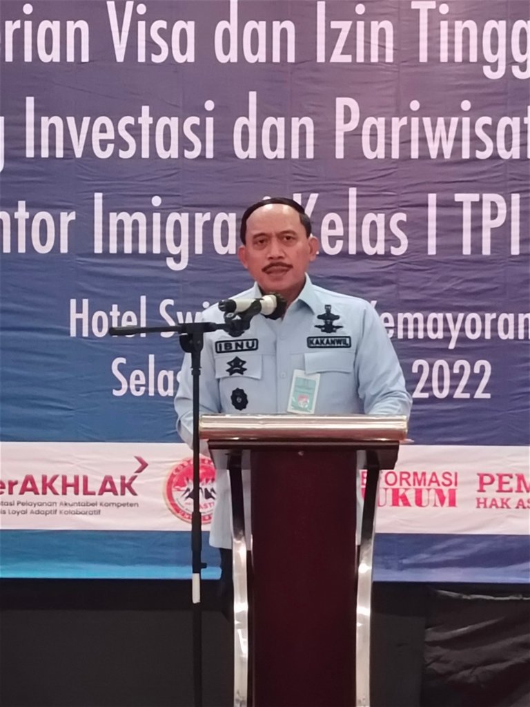 Kepala Kantor Imigrasi Kelas I Abdi Widodo Subagyo dalam laporannya menyampaikan kegiatan sosialisasi ini dilaksanakan terkait dengan Surat Edaran yang dikeluarkan Direktorat Jenderal Imigrasi tentang Kebijakan kemudahan keimigrasian pada pemberian Visa dan Izin tinggal, dalam rangka mendukung investasi dan parawisata berkelanjutan.