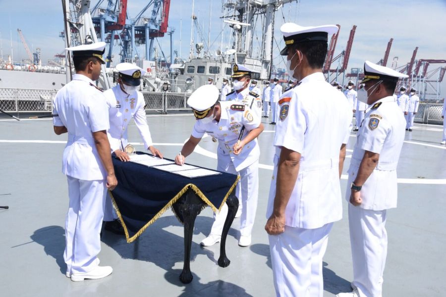 Komandan Satlinlamil 1 Kolonel Laut (P) Yohanes Upang memimpin acara serah terima Komandan KRI KBI-971 dari Letkol Laut (P) Sulthon Firdaus kepada Letkol Laut (P) Akbar Faisal Harahap di geladak KRI Tanjung Kambani-971 yang saat ini sandar di Dermaga Mako Kolinlamil, Tanjung Priok, Jakarta Utara. Sedangkan Komandan Satlinlamil 2 Kolonel Laut (P) Muhammad Nizarudin memimpin serah terima jabatan Komandan KRI BJM-592 dari Letkol Laut (P) Bambang Purnomo kepada Letkol Laut (P) Agung Ariwibowo dan jabatan Komandan KRI TBN-520 dari Letkol Laut (P) Agung Ariwibowo kepada Letkol Laut (P) Mochammad Hadi Achyadi di Dermaga Semampir Timur Koarmada II, Surabaya, Jumat (28/10/2022).