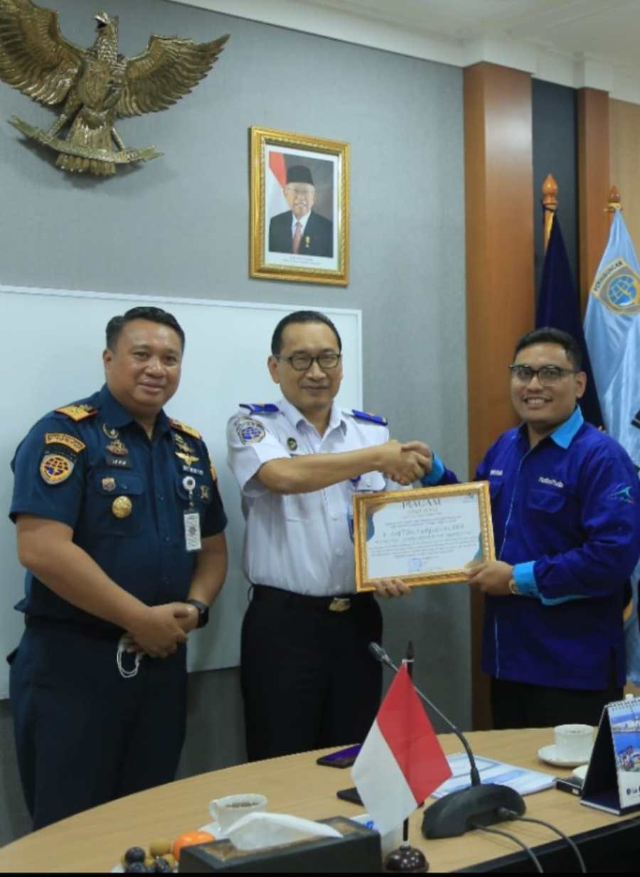 Piagam diserahkan langsung oleh Ketua Umum Maritim Muda Nusantara Kaisar Akhir kepada Dirjen Arif Toha di Kantor Kementerian Perhubungan Jakarta, Rabu (16/11/2022)