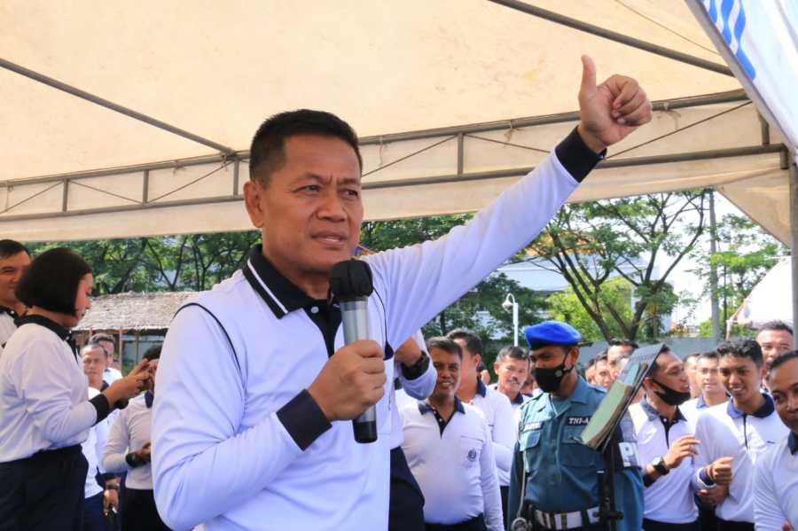 Dalam rangka menjalin silaturahmi dan kedekatan dengan prajurit dan PNS Satuan Lintas Laut Militer 2, Panglima Komando Lintas Laut Militer Laksda TNI Agus Hariadi beserta Ketua Gabungan Jalasenastri Kolinlamil Ny. Nana Agus Hariadi melaksanakan olah raga bersama dan dilanjutkan dengan Jam Komandan di Mako Satlinlamil 2, Surabaya, Selasa (22/11/2022).