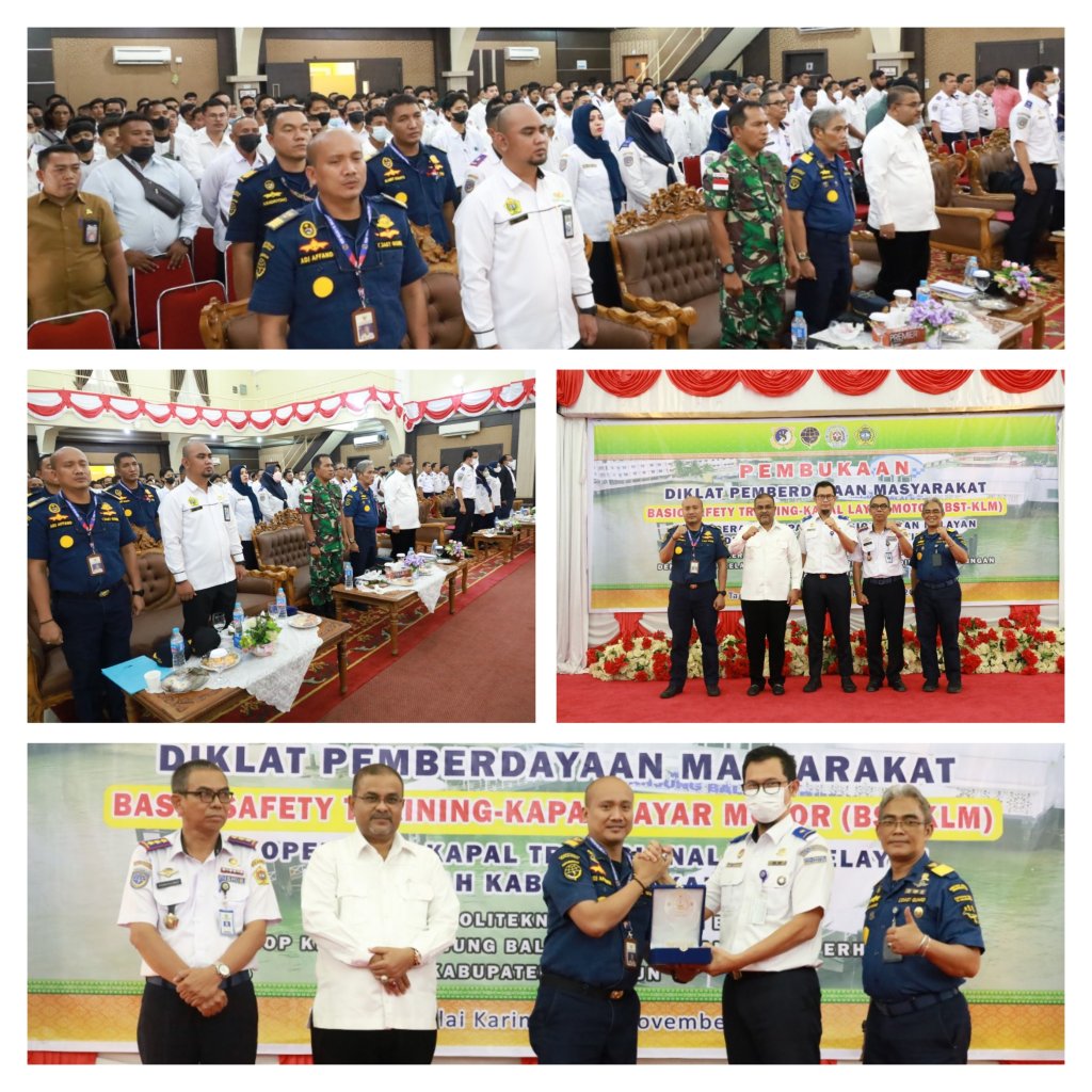Kementerian Perhubungan Cq Direktorat Jenderal Perhubungan Laut melalui Kantor Kesyahbandaran dan Otoritas Pelabuhan (KSOP) Kelas I Tanjung Balai Karimun melaksanakan kegiatan pendidikan dan pelatihan (Diklat) pemberdayaan masyarakat Basic Safety Training – Kapal Layar Motor ( BST-KLM). Kegiatan ini dibuka langsung oleh Bupati Karimun Dr. H. Aunur Rafiq, S.Sos, M.Si, bertempat di Gedung Nasional Kabupaten Karimun, Selasa (22/12/2022).