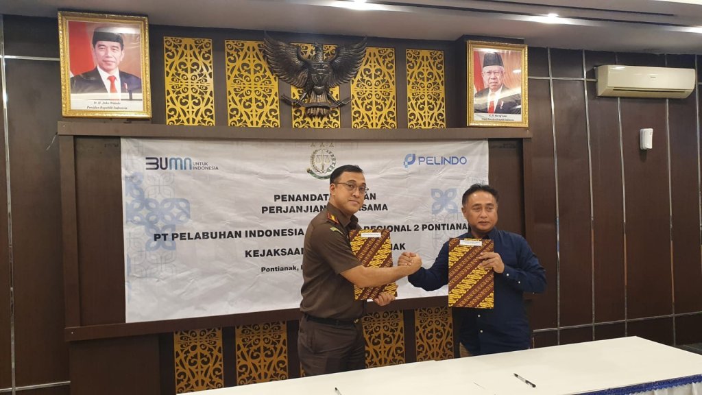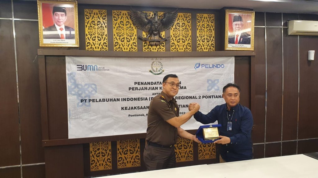 Pelabuhan Indonesia (Persero) Regional 2 Pontianak bersama Kejaksaan Negeri Pontianak melakukan Penandatanganan Perjanjian Kerjasama tentang Penanganan Permasalahan Hukum Bidang Perdata Dan Tata Usaha Negara, Penandatanganan kedua belah pihak dilakukan oleh General Manager Pelindo Regional 2 Pontianak, Hambar Wiyadi dan Kepala Kejaksaan Negeri (Kejari) Pontianak, Wahyudi, SH.,M.Hum., di Kantor PT Pelabuhan Indonesia (Persero) Regional 2 Pontianak, Kamis, (24/11/ 2022).