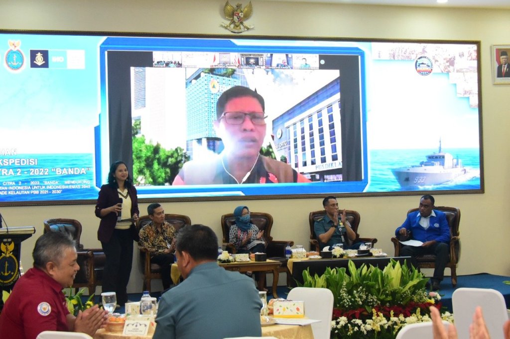 Pemaparan pertama oleh Ketua Panitia Ekspedisi Kolonel Laut (P) Anom Puji Hascaryo, S.T. berupa Pemaparan hasil umum Ekspedisi Jala Citra 2 – 2022 “Banda” dilanjutkan dengan pemaparan tanggapan mengenai hasil temuan penelitian pada Ekspedisi Jala Citra 2 – 2022 “Banda” yang berkaitan dengan teknologi acoustic bawah air oleh Prof. Henry M. Manik, Ph.D. selaku pakar acoustic bawah air Departemen Ilmu dan Teknologi Kelautan IPB, Pemaparan tanggapan mengenai hasil temuan penelitian pada Ekspedisi Jala Citra 2 – 2022 “Banda” yang berkaitan dengan bidang Pemetaan dan Evaluasi Resiko Bencana oleh Dr. Ir. Udrekh, S.E., M.Sc. selaku Direktur Pemetaan dan Evaluasi Resiko Bencana, BNPB, Pemaparan tanggapan mengenai hasil temuan penelitian pada Ekspedisi Jala Citra 2 – 2022 “Banda” yang berkaitan dengan riset laut dalam oleh Intan Suci Nurhati, Ph.D. selaku Kepala Pusat Riset Laut Dalam BRIN, serta Pemaparan tanggapan mengenai hasil temuan penelitian pada Ekspedisi Jala Citra 2 – 2022 “Banda” yang berkaitan dengan survei dan pemetaan kelautan oleh Dr. Y. Lapulalan, M.Si. selaku Dekan Fakultas Perikanan dan Ilmu Kelautan, Universitas Pattimura Ambon.(MM-01).