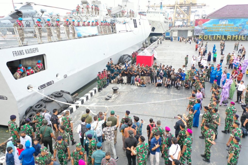 Dari Dermaga Mako Kolinlamil, Tanjung Priok, Jakarta Utara, KRI Frans Kaisepo-368 bertolak menuju Lebanon dengan mengemban misi perdamaian dunia dalam Satuan Tugas Maritime Task Force Kontingen Garuda XXVIII/UNIFIL. Acara pelepasan KRI FKO-368 dipimpin langsung Panglima TNI Jenderal TNI Andika Perkasa dan didampingi oleh Kepala Staf Angkatan Laut Laksamana TNI Yudo Margono dan sejumlah pejabat TNI lainnya, Kamis (1/12/2022).