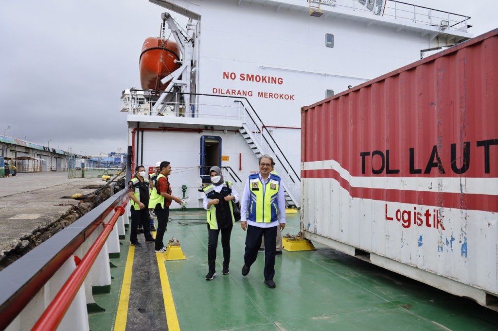 Staf Khusus Menteri Perhubungan Bidang Hubungan Antar Lembaga, Buyung Lalana bersama Tenaga Ahli Menteri Perhubungan Andre Mulyana melakukan peninjauan kapal tol laut yang sandar di dermaga Pelabuhan Makassar, Jumat, hari ini Jumat (2/12/2022)