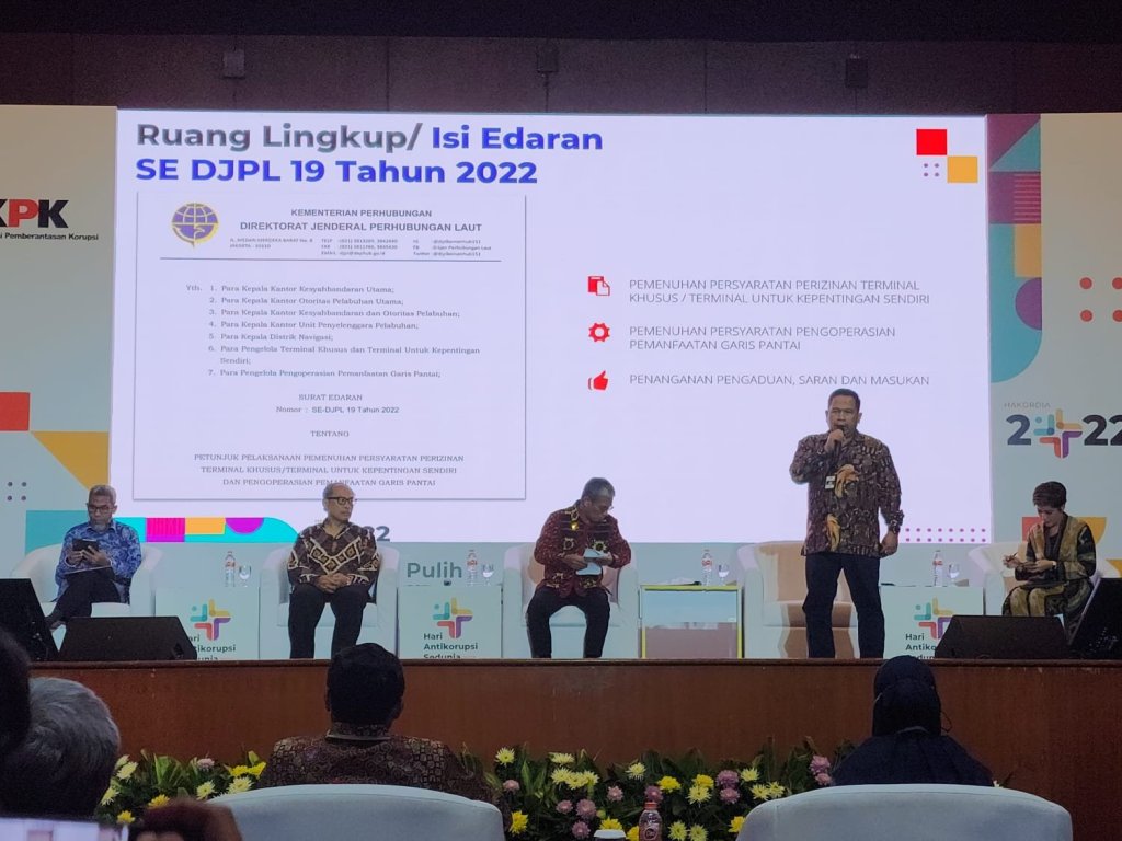 Hal ini disampaikan oleh Dirjen Perhubungan Laut yang diwakili Direktur Kepelabuhanan, Subagiyo dalam acara Dialog Publik-Privat : Praktik Baik Mendorong Anti Suap & Perbaikan di Sektor Usaha sebagai bagian dari rangkaian kegiatan peringatan Hari Antikorupsi Sedunia (Hakordia) 2022.