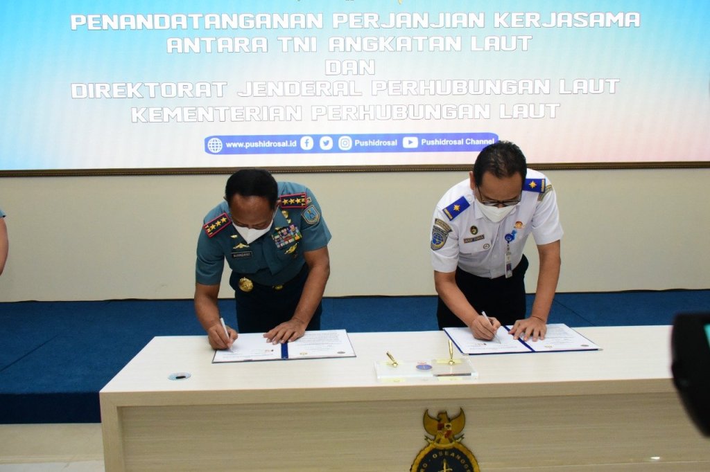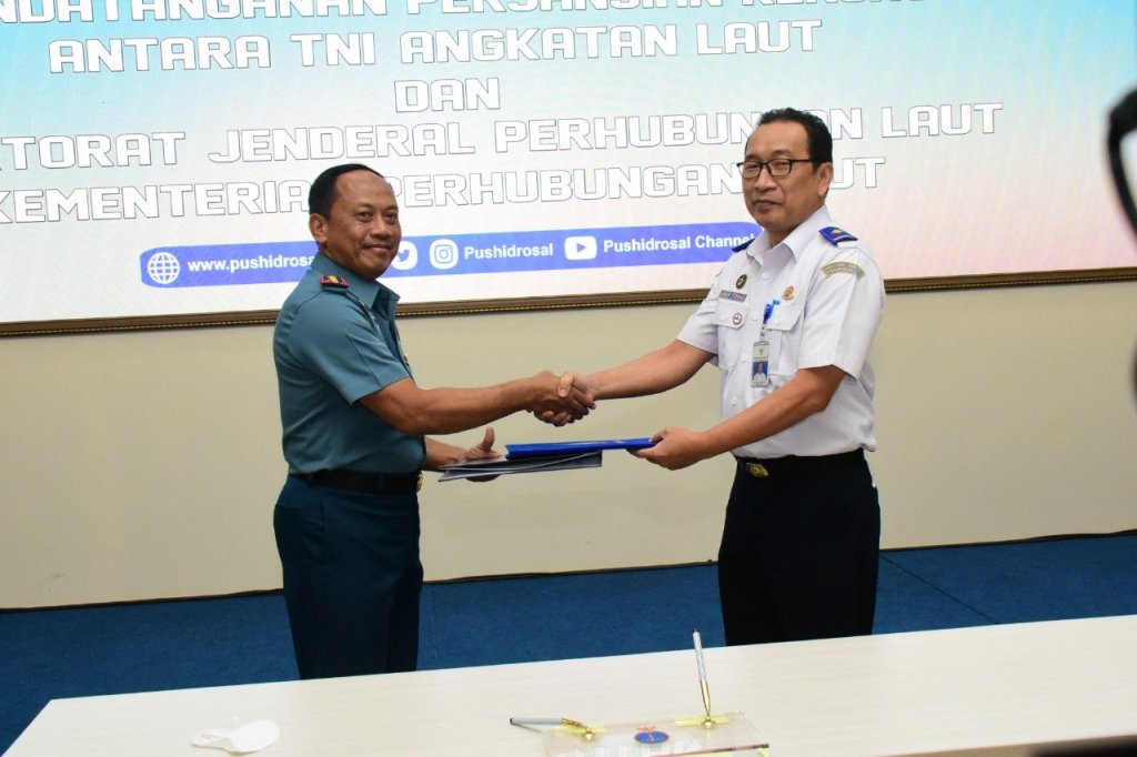 Dalam kegiatan ini dilakukan juga penandatanganan Perjanjian Kerja Sama (PKS) antara TNI AL dan Direktorta Jenderal Perhubungan Laut Kementerian Perhubungan, melalui Komandan Pushidrosal Laksamana Madya TNI Nurhidayat sebagai Wakil TNI AL dengan Dirjen Perhubungan Laut Arif Toha Tjahjagama mewakili Kementerian Perhubungan.