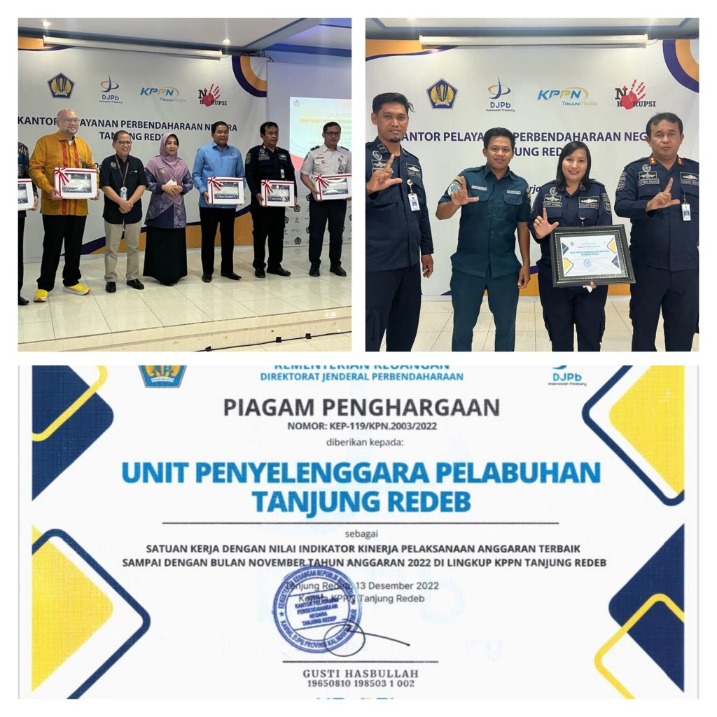 Adapun Satuan Kerja (Satker) Kuasa Pengguna Anggaran yang mendapat penghargaan dari KPPN Tanjung Redeb Kelas A2 diantaranya : Pertama : Satuan Kerja Kantor Unit Penyelenggara Pelabuhan (KUPP) Kelas II Tanjung Redeb sebagai Satker dengan nilai indikator kinerja pelaksanaan Anggaran TERBAIK sampai bulan November tahun anggaran 2022 di lingkup KPPN Tanjung Redeb Kelas A2.