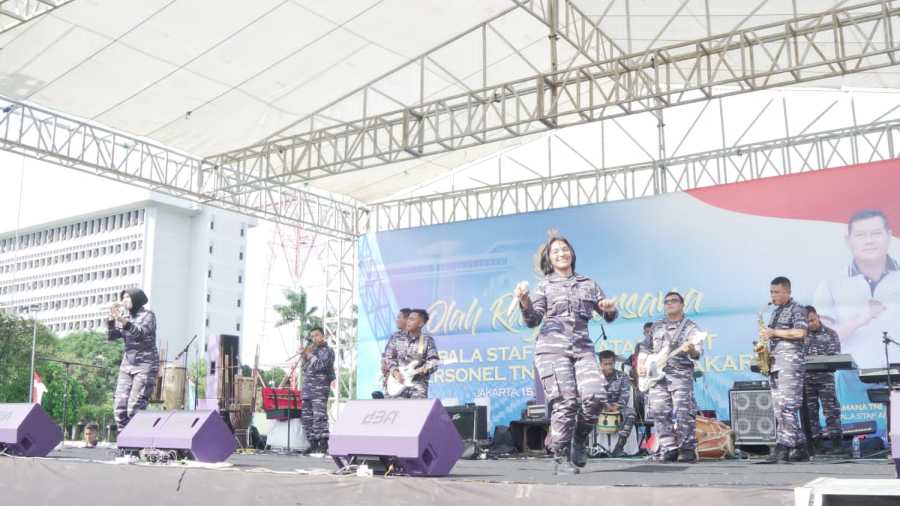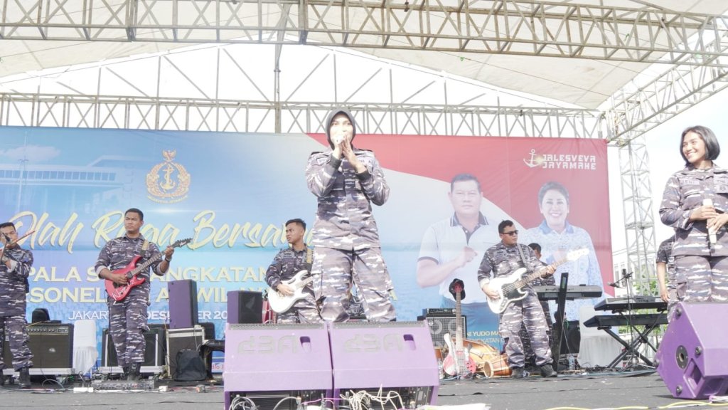 Dengan formasi penuh, The Kolin Power Band menggoyang prajurit dan PNS TNI AL dan mampu menghangatkan suasana dengan lagu-lagu yang dibawakan band tersebut.