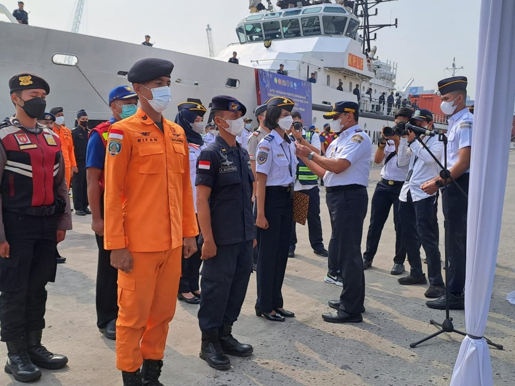 Apel Kesiapan Penyelenggaraan Angkutan Laut Nataru 2022/2023 diikuti 150 personel melibatkan instansi terkait di pelabuhan Tanjung Priok dan bertindak sebagai Pemimpin Ucapara Kepala Kantor Otoritas Pelabuhan Tanjung Priok Dr.Capt Wisnu Handoko M.Sc.