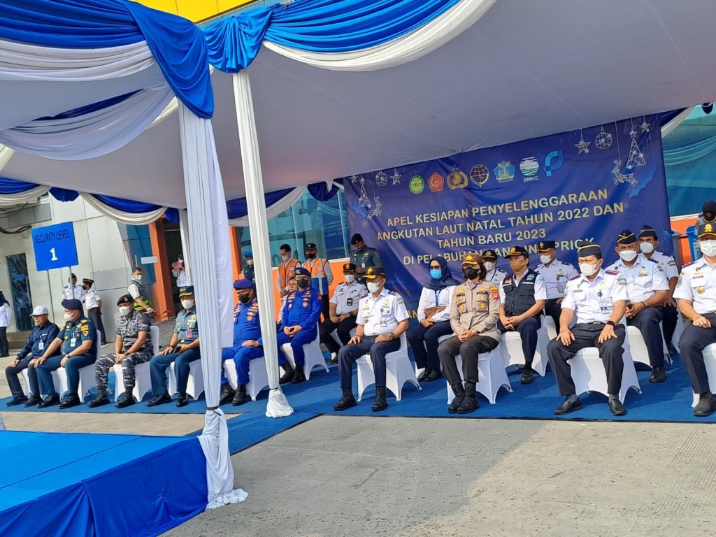 Kementerian Perhubungan Cq Direktorat Jenderal Perhubungan Laut melalui Kantor Syahbandar Utama Tanjung Priok dan Kantor Otoritas Pelabuhan Tanjung Priok melaksanakan Apel Kesiapan Penyelenggaraan Angkutan Laut Nataru 2022/2023 yang digelar di Dermaga Terminal Penumpang Nusantara Pelabuhan Tanjung Priok, hari ini Minggu (18/12/2022).