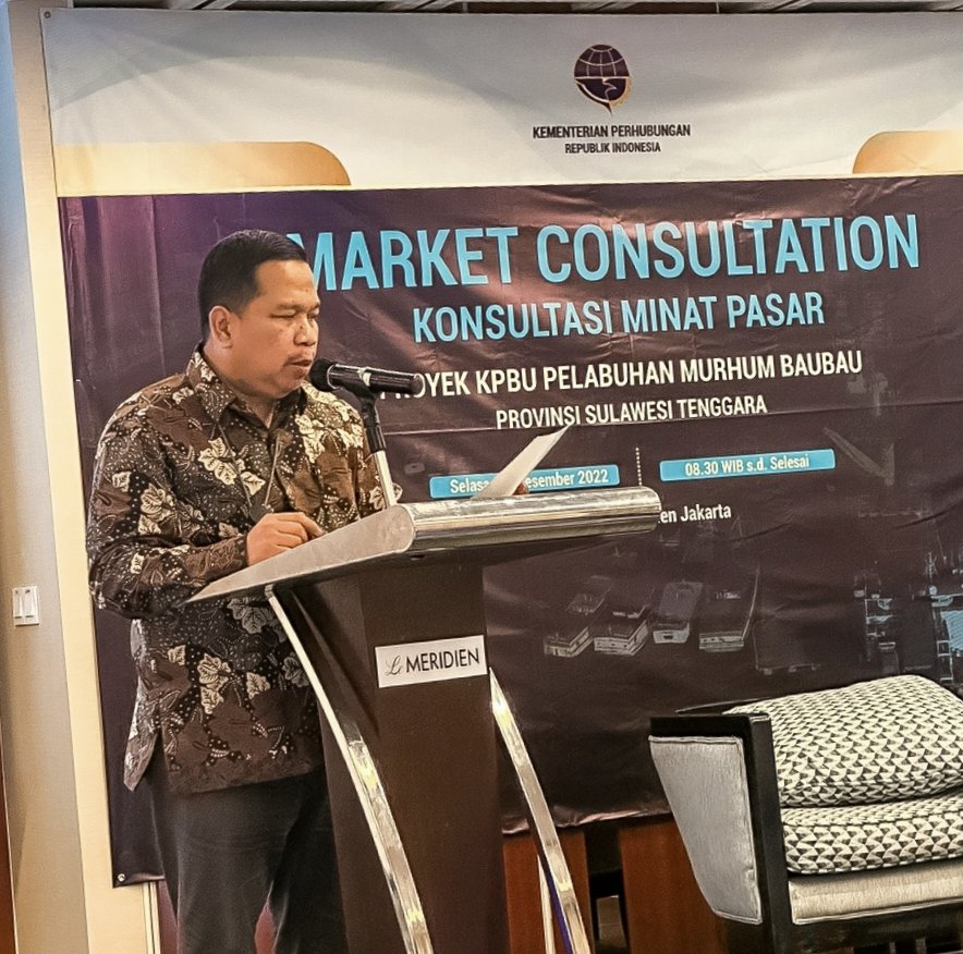 Pemerintah melalui Kementerian Perhubungan memberikan kesempatan kepada Badan Usaha untuk berperan dalam pembangunan dan pengembangan seluruh sektor ekonomi khususnya dalam penyediaan infrastruktur yang menjadi tulang punggung perekonomian secara nasional. Demikian sambutan Direktur Jenderal Perhubungan Laut yang disampaikan oleh Direktur Kepelabuhanan Subagiyo pada acara Market Consultation Proyek KPBU Pelabuhan Baubau Provinsi Sulawesi Tenggara di Jakarta, Kamis (22/12/2022).
