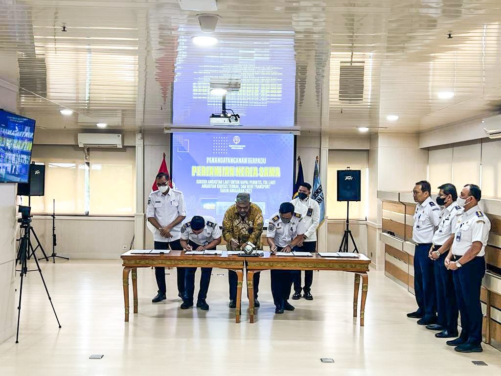 Kementerian Perhubungan Cq Direktorat Jenderal Perhubungan Laut berkomitmen untuk terus meningkatkan pelayanan angkutan laut melalui sinergi dan kolaborasi dengan stakeholder. Ditandai dengan “Penandatanganan Terpadu Perjanjian Kerjasama Penyelenggaraan Kewajiban Pelayanan Publik Kapal Perintis, Kapal Barang Tol Laut, Kapal Khusus Angkutan Ternak dan Kapal Rede Tahun Anggaran 2023” bertempat di kantor pusat Kementerian Perhubungan, Jakarta, Rabu (28/12/2022).