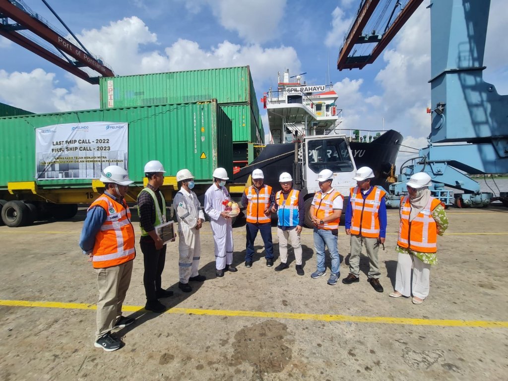 Sementara pada pelayanan pertama (first call pada 1 Januari 2023) melayani KM. SPIL Rahayu Voy. 40/2022 yang sandar di dermaga 8 melaksanakan kegiatan bongkar dan muat sebanyak 641 TEUs yang diageni oleh PT Salam Pacific Indonesia Lines (PT SPIL).
