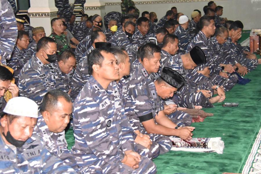 Sesaat setelah ibadah sholat Jumat usai, Komando Lintas Laut Militer menggelar doa bersama yang diikuti oleh Panglima Kolinlamil Laksda TNI Agus Hariadi beserta pejabat utama Kolinlamil dan prajurit serta PNS Kolinlamil di Masjid At-Tauhid, Mako Kolinlamil, Tanjung Priok, Jakarta Utara, Jumat (13/1/2023).