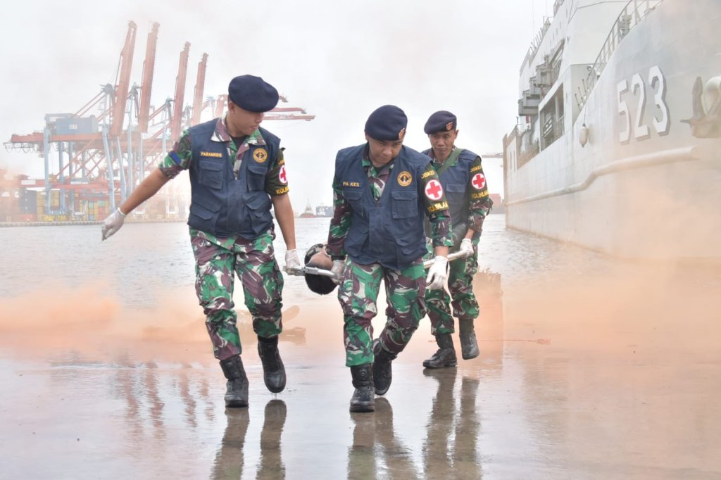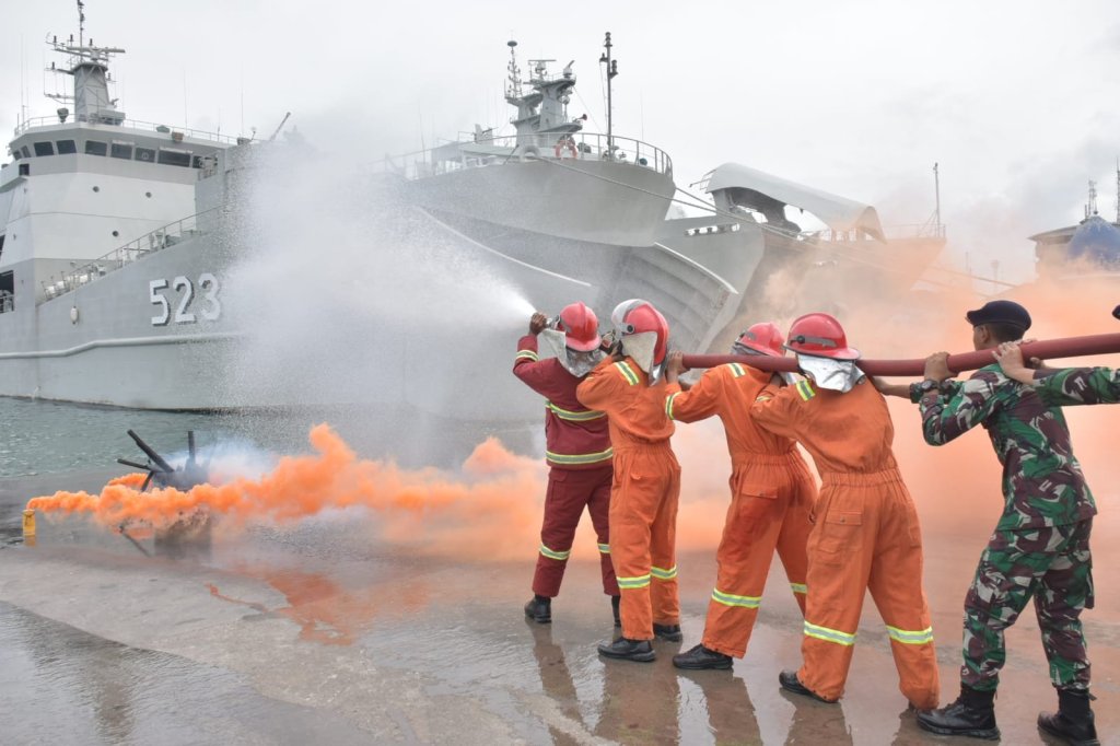 Mensikapi hal tersebut, Satuan Lintas Laut Militer 1 menyelenggarakan latihan Penyelamatan Kapal (PEK) penanggulangan kebakaran di Dermaga Beaching Plate, Mako Kolinlamil, Tanjung Priok, Jakarta Utara, Senin (30/1/2023).