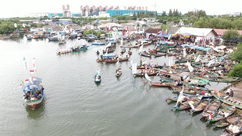 Dalam rangka melestarikan adat budaya kearifan lokal masyarakat pesisir, nelayan dan warga pesisir di Muara Tawar melaksanakan acara tradisi syukuran nelayan Enam Muara di TPI Paljaya Muara Tawar, Desa Segara Jaya, Kecamatan Taruma Jaya, Kabupaten Bekasi, Minggu (29/1/2023).