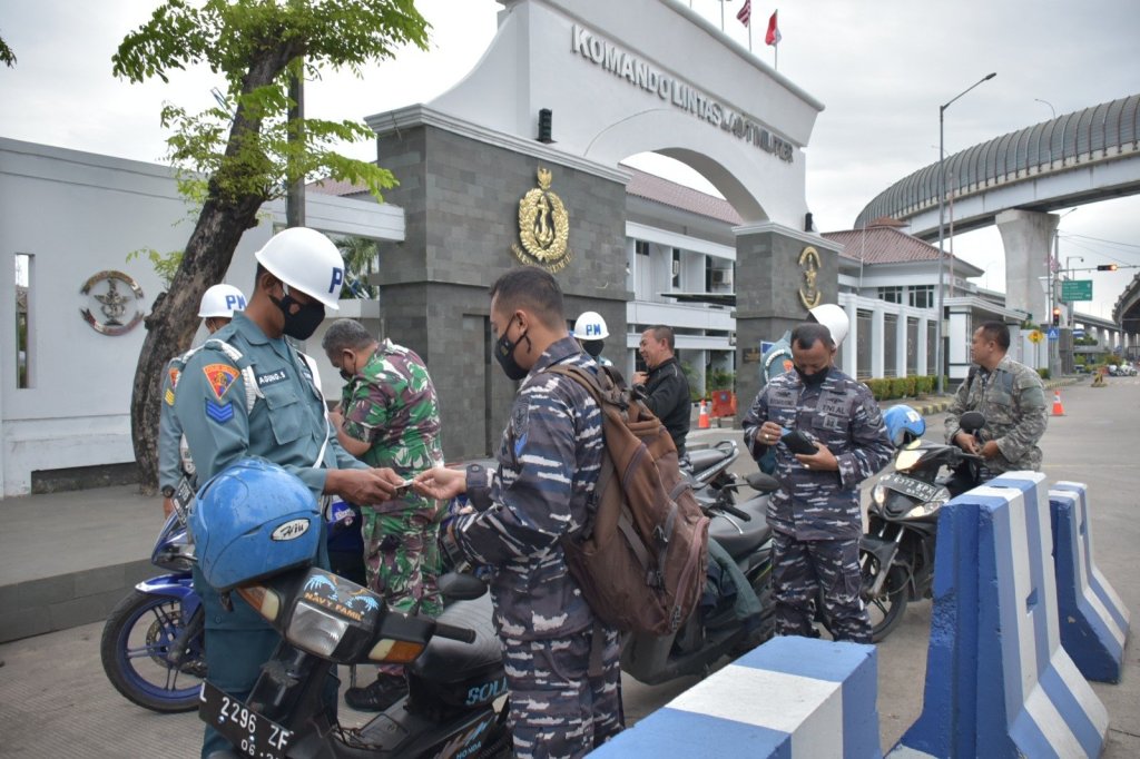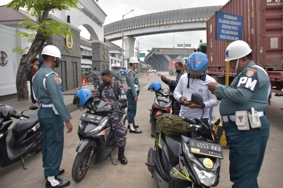 Polisi Militer Angkatan Laut jajaran Komando Lintas Laut Militer melaksanakan kegiatan Operasi Penegakan Ketertiban (Opsgaktib) dengan sasaran seluruh prajurit dan PNS Kolinlamil. Opsgaktib Pomal Kolinlamil digelar di depan pintu gerbang Mako Kolinlamil, Tanjung Priok, Jakarta Utara guna menghindari terjadinya kemacetan lalu lintas yang bisa ditimbulkannya, Selasa (14/2/2023).