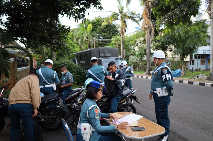 Tingkatkan disiplin prajurit, Provos Pusat Hidro-Oseanografi TNI AL (Pushidrosal) menggelar operasi penegakan dan ketertiban (Gaktib) bagi prajurit dan PNS Pushidrosal di pintu masuk Mako Pushidrosal, Ancol Timur, Jakarta Utara, Rabu, 15 Februari 2023.