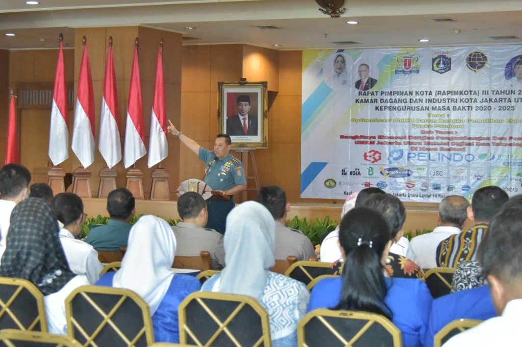 Panglima Komando Lintas Laut Militer Laksda TNI Yayan Sofiyan menghadiri acara pembukaan Rapat Pimpinan Kota (Rapimkota) III Kamar Dagang dan Industri (KADIN) Kota Jakarta Utara yang berlangsung di Ruang Bahari, Kantor Walikota Kota Administrasi Jakarta Utara lantai 14, Jl. Yos Sudarso, Tanjung Priok, Jakarta Utara, Rabu (22/2/2023).