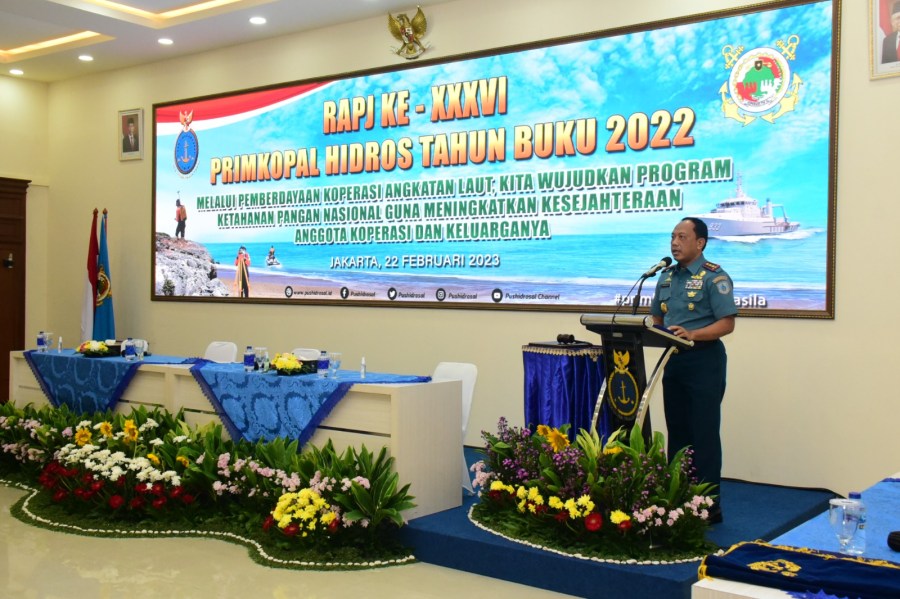 Primer Koperasi Angkatan Laut (Primkopal) Hidros menggelar Rapat Anggota Pertanggung Jawaban (RAPJ) ke-36 tahun buku 2022 bertempat di gedung serbaguna Pushidrosal, Ancol Timur, Jakarta Utara, Rabu, (22/2/2023).