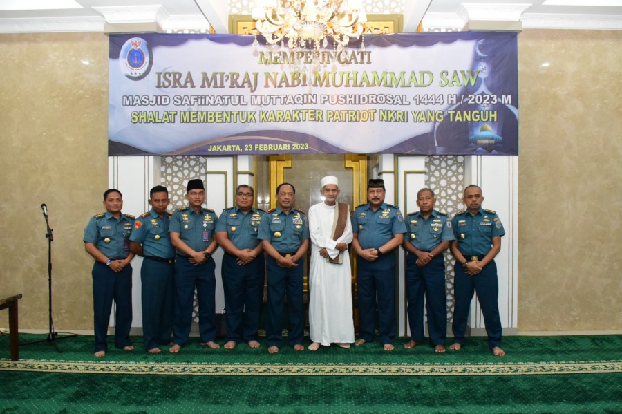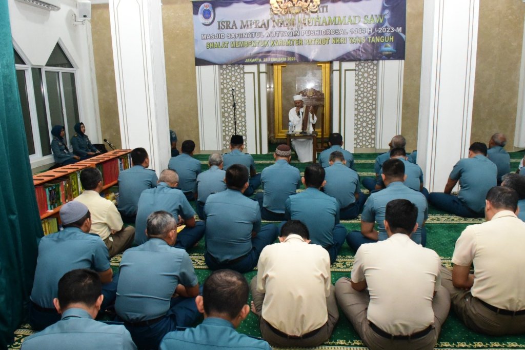 Pusat Hidro-Oseanografi TNI Angkatan Laut (Pushidrosal) memperingati Isra Mi’raj Nabi Muhammad SAW 1444 H / 2023 M bertempat di Masjid Safiinatul Muttaqin Pushidrosal, Ancol Timur, Jakarta Utara, Kamis, (23/2/2023).