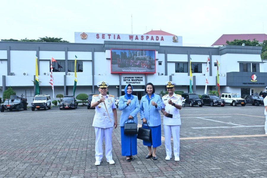 Panglima Komando Lintas Laut Militer Laksda TNI Yayan Sofiyan beserta Ketua Gabungan Jalasenastri Kolinlamil Ny. Peni Yayan Sofiyan menghadiri upacara serah terima jabatan Komandan Pasukan Pengaman Presiden (Paspampres) yang berlangsung di Lapangan Hitam Mako Paspampres Jl. Tanah Abang II, Jakarta Pusat dengan Inspektur Upacara Panglima TNI Laksamana TNI Yudo Margono, Senin (27/2/2023).