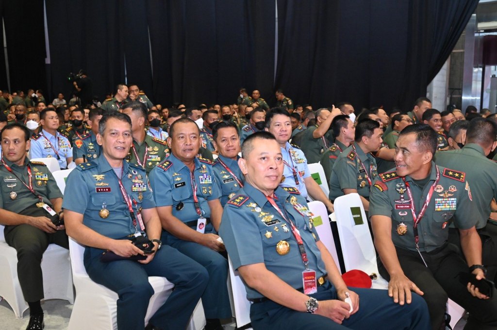 Panglima Komando Lintas Laut Militer Laksda TNI Yayan Sofiyan beserta sejumlah pejabat tinggi TNI-Polri serta pejabat Pemerintah Daerah menghadiri Rapat Koordinasi Nasional (Rakornas) Penanggulangan Bencana tahun 2023 yang berlangsung Arena Jakarta Internasional Expo Kemayoran Hall B1 dan B2 yang dibuka Presiden RI Joko Widodo, Kamis (2/3/2023).