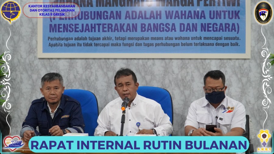 Kepala Kantor Syahbandar Otoritas dan Pelabuhan (KSOP) Kelas II Gresik, Hotman Siagian, S.E, S.SiT, M.M pimpin langsung rapat internal rutin bulanan, Selasa (7/3/2023). Rapat ini membahas arahan yang tertuang dalam surat Plh. Direktur Jenderal Perhubungan Laut Nomor : UM.209/4/29/DJPL/2023 tanggal 1 Maret 2023, Perihal Arahan Pelaksanaan Pola Hidup Sederhana Kepada ASN di Lingkungan Direktorat Jenderal Perhubungan Laut.