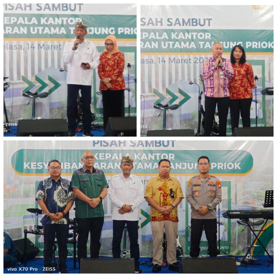 Kantor Kesyahbandaran Utama Pelabuhan Tanjung Priok melaksanakan acara Pisah Sambut Kepala Kantor Kesyahbandaran Utama Tanjung Priok, dari Andi Hartono ke Capt. Weku Frederick Karuntu, bertempat di halaman Kantor Syahbandar pelabuhan Tanjung Priok, Jakarta Utara, Selasa (14/3/2023).