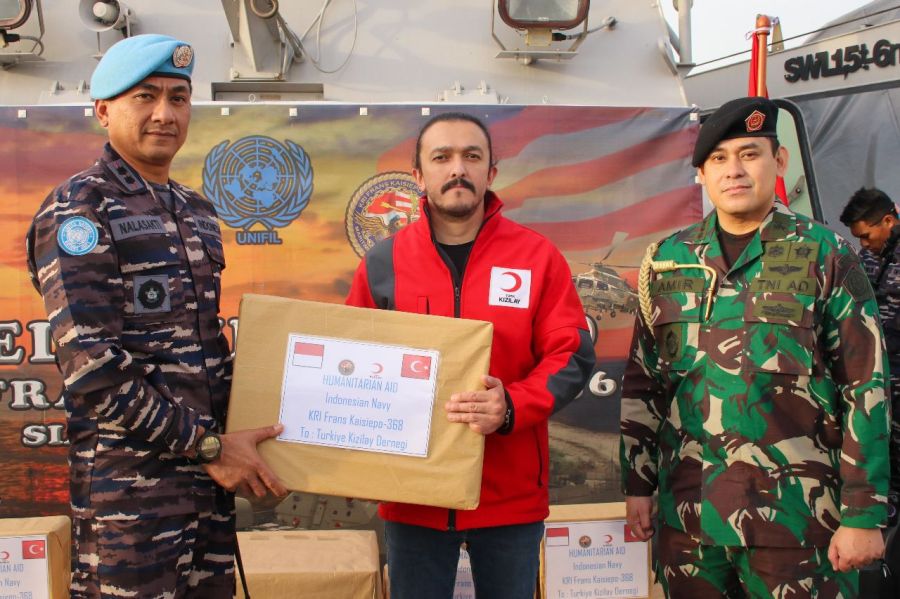 Komandan KRI Frans Kaisiepo-368 yang juga merupakan Dansatgas MTF TNI Konga XXVIII-N/UNIFIL Letkol Laut (P) John David Nalasakti Sondakh menyerahkan bantuan kemanusiaan untuk korban gempa Turki. Bantuan tersebut diterima oleh Turkish Red Crescent (Turkiye Kizilay Dernegi) sebagai organisasi kemanusiaan terbesar di Turki yang tengah berjuang melaksanakan penanggulangan bencana.