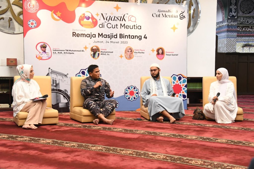 “Positife Circle dalam lingkungan remaja masjid dapat mendorong terwujudnya generasi muda yang unggul dan berakhlak”. Hal tersebut disampaikan Kepala Staf Angkatan Laut (Kasal) Laksamana TNI Muhammad Ali dalam Talkshow Ramadhan Remaja Masjid Bintang 4 bertempat di Masjid Cut Meutia, Jakarta Pusat, Jumat (24/3/2023).