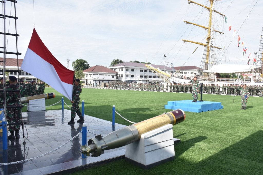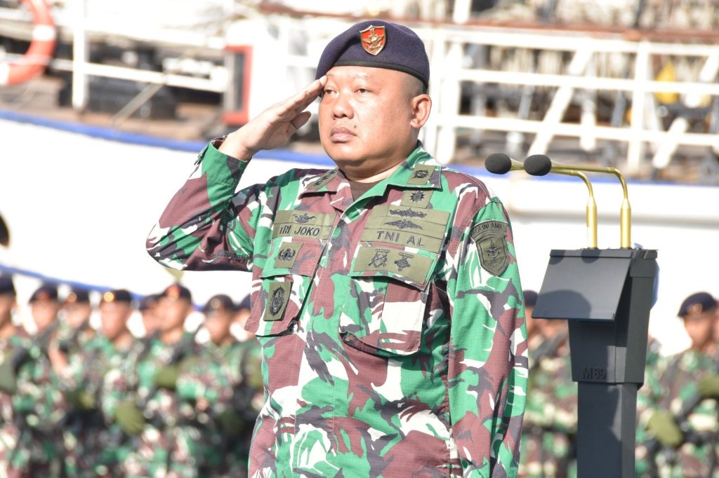Kepala Dinas Komunikasi dan Elektronika Komando Lintas Laut Militer Kolonel Laut (E) Trijoko berkesempatan menerima apel gabungan prajurit dan PNS Kolinlamil sekaligus memimpin upacara penaikan bendera merah putih di lapangan Moeljono Silam, Mako Kolinlamil, Tanjung Priok, Jakarta Utara, Senin (27/3/2023).