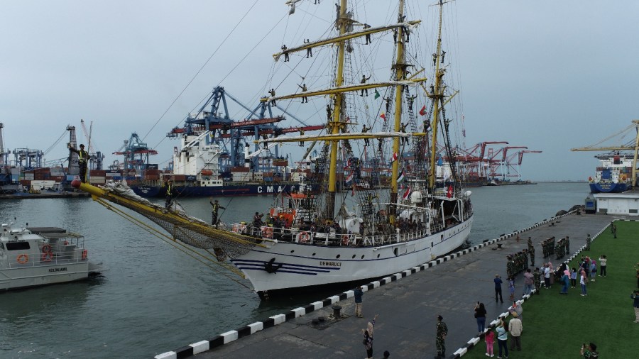 Berturut-turut dari Kal Kadet 06 dan Kal Kadet 07 meninggalkan dermaga Mako Kolinlamil, Tanjung Priok, Jakarta Utara disusul oleh KRI Makassar-590 dan KRI Dewaruci, Selasa (28/3/2023). Dua KRI dan dua KAL yang membawa Taruna Akademi Angkatan Laut angkatan ke-71 dalam kegiatan latihan praktek pelayaran Pra Jalasesya tahun 2023 tersebut akan berlayar menuju di Surabaya sekaligus mengantar Taruna kembali ke home base di Akademi Angkatan Laut, Bumimoro, Surabaya. Tampak hadir melepas keberangkatan Satlat Pra Jalasesya tahun 2023, Komandan Satuan Lintas Laut Militer 1 Kolonel Laut (P) Yohanes Upang beserta jajarannya.