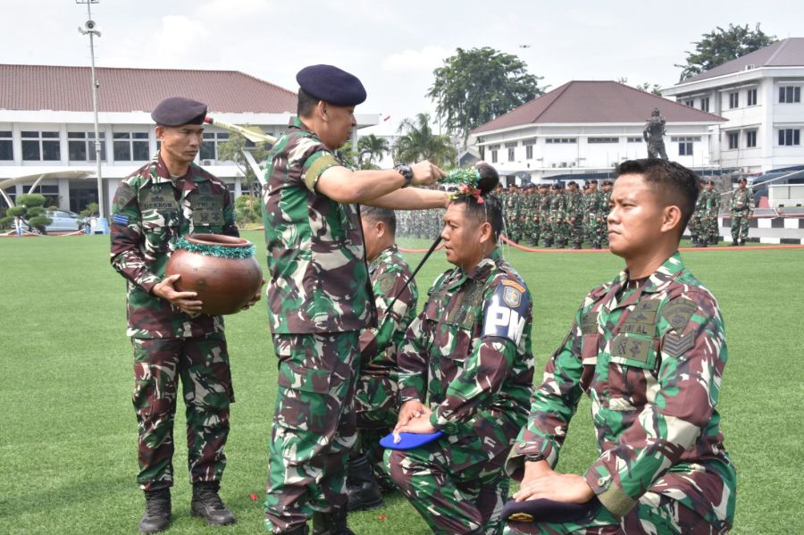 Usai menerima laporan korps kenaikan pangkat Perwira Menengah Kolinlamil di Gedung Laut Nusantara, Mako Kolinlamil, Panglima Komando Lintas Laut Militer Laksda TNI Yayan Sofiyan memimpin langsung acara tradisi kenaikan pangkat prajurit dan Pegawai Negeri Sipil Kolinlamil periode waktu 1 April 2023 di lapangan Mulyono Silam, Mako Kolinlamil, Tanjung Priok Jakarta Utara, Senin (3/4/2023).