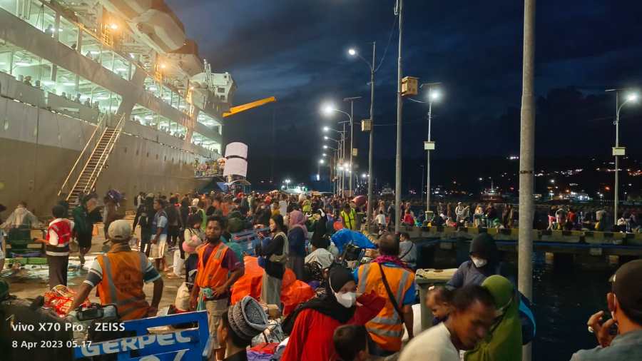 Kepala Cabang PT Pelni Cabang Baubau Dicky Darmawandi ditengah pantauan Arus Penumpang angkutan Lebaran tahun ini kepada Mimbar Maritim mengatakan arus penumpang mudik Lebaran 2023 hari ini yang turun dari KM Dorolonda kurun lebih berjumlah 1.000 orang dan naik 700-an orang.