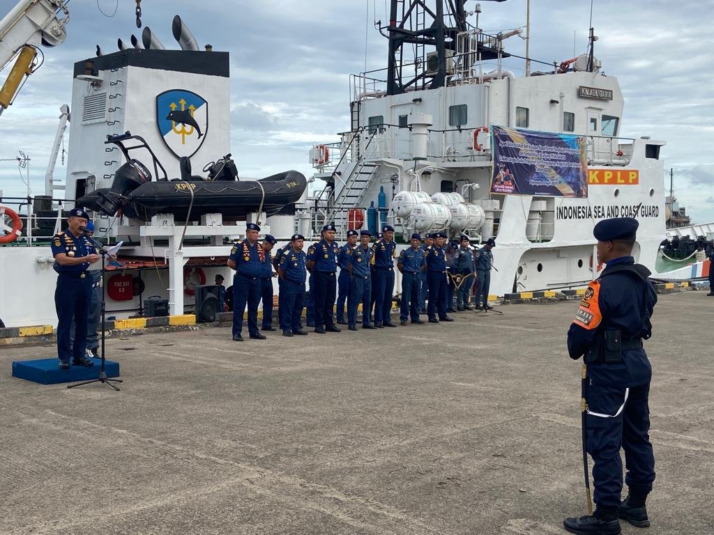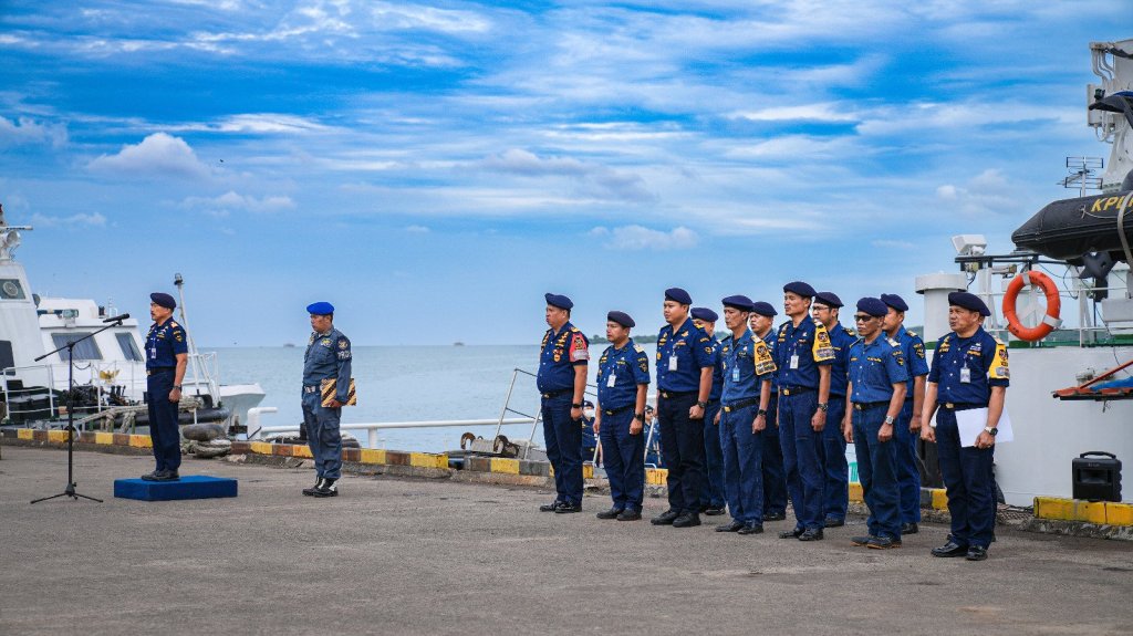 Kementerian Perhubungan Cq Direktorat Jenderal Perhubungan Laut, Direktorat KPLP melalui Pangkalan Penjagaan Laut dan Pantai Kelas I Tanjung Priok melaksanakan Gelar Pasukan dalam rangka Apel Siaga Kesiapan Operasi Pelayanan dan Pengawasan Pengamanan Angkutan Laut Lebaran tahun 2023 bertempat di Dermaga Golden Key pelabuhan Bojonegara Banten, Senin (10/4/ 2023).