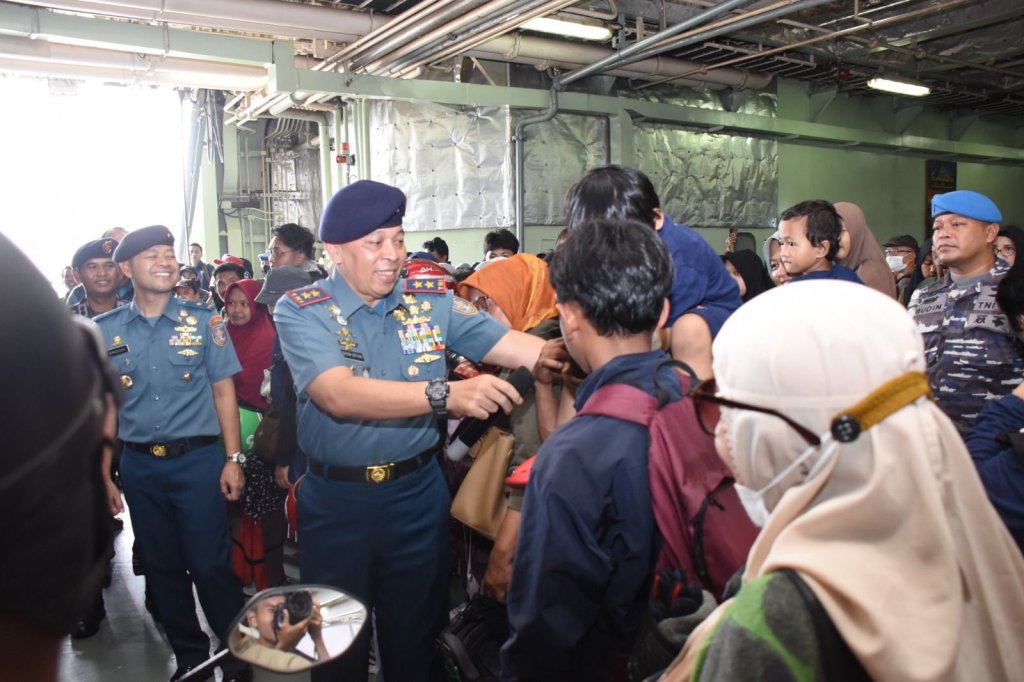 Memanfaatkan moment untuk bertemu dengan pemudik yang baru tiba di Jakarta, Panglima Kolinlamil berkesempatan untuk meninjau serta menyapa para pemudik yang sangat senang bisa mudik naik kapal perang dengan pelayanan yang sangat baik dan memuaskan. Selama pelayaran pemudik merasakan sensasi tersendiri, interaksi dengan prajurit KRI BJM-592 terjalin dengan baik tidak ubahnya seperti keluarga sendiri.
