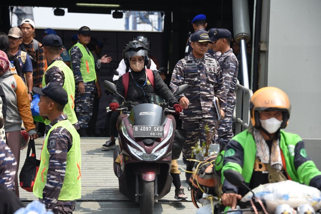 Mudik asyik gratis naik kapal perang merupakan hasil kerja sama TNI AL dengan Kementrian Perhubungan, Badan Amil Zakat Nasional (Baznas) dan PT Pelindo dalam rangka memenuhi kebutuhan masyarakat akan moda transportasi yang aman dan nyaman. (Red-MM)