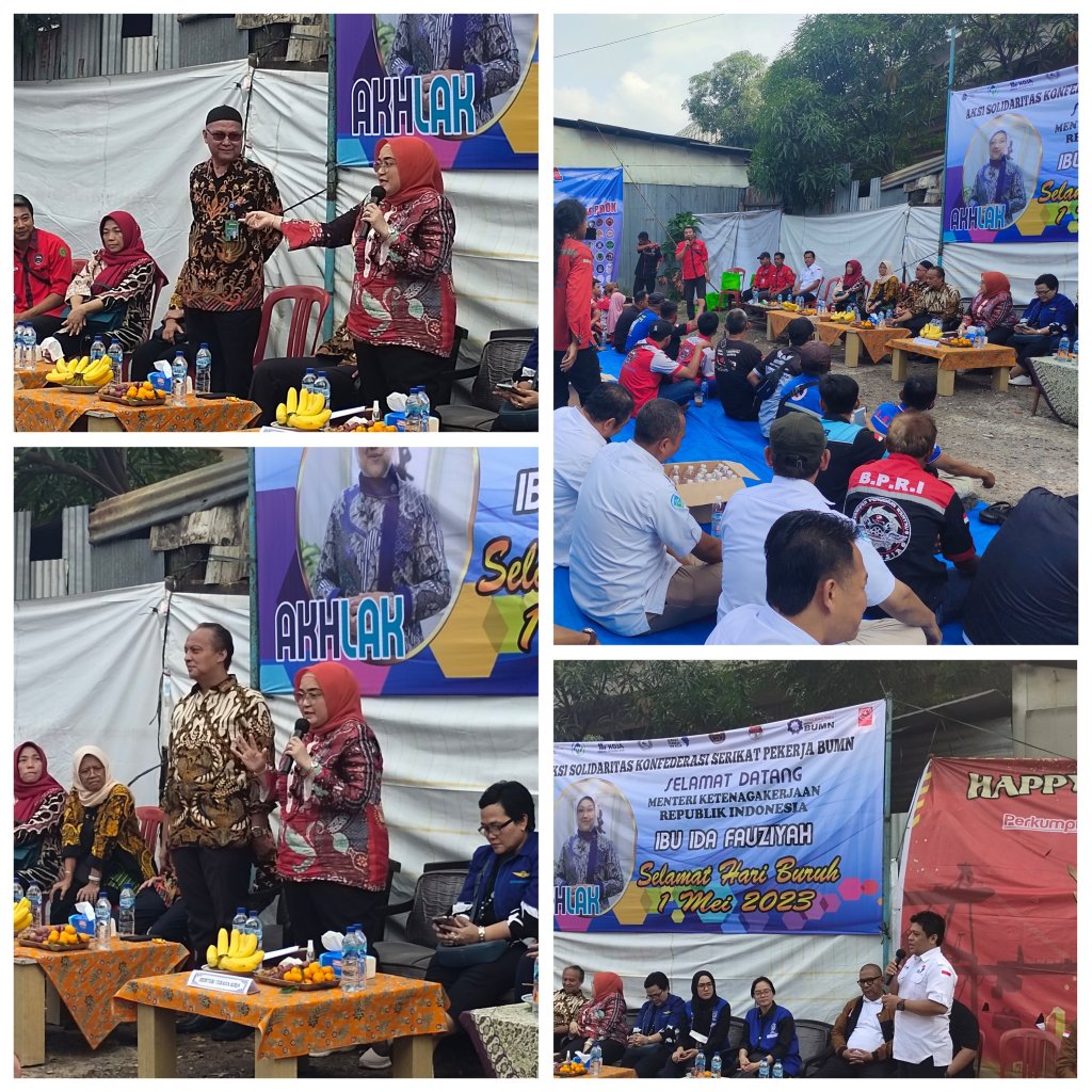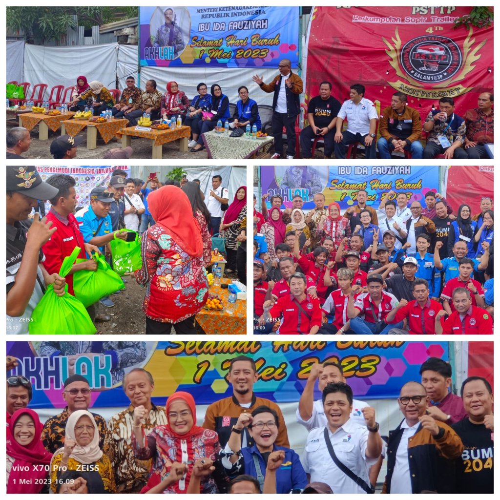 Dalam rangka peringatan Hari Buruh Internasional jatuh tanggal 1 Mei 2023 (May Day) yang diperingati secara nasional dan seluruh dunia. Menteri Ketenagakerjaan RI (Kemenaker RI) yang diwakili Dirjen Pembinaan Hubungan Industrial dan Jaminan Sosial Tenaga Kerja Indah Anggoro Putri, bersama Organisasi Serikat Pekerja diantaranya Presiden Konfederasi Serikat Pekerja BUMN Sinergi Irfan Achmad, Federasi Serikat Pekerja BUMN, Sinergi International Transport Workers, Federation Aliansi Hukum Pekerja BUMN, Ketua Umum Serikat Pekerja KSO TPK Koja Farudi, Ketua Panguyuban Para Pekerja (sopir dan buruh angkutan) di Lingkungan Pelabuhan Tanjung Priok, Agung. Momentum May Day hadir di Posko Bersama Forum Lintas Komunitas Pengemudi Indonesia Tanjung Priok (FLKPI) di Cilincing – Jakarta Utara, Senin (1/5/2023).